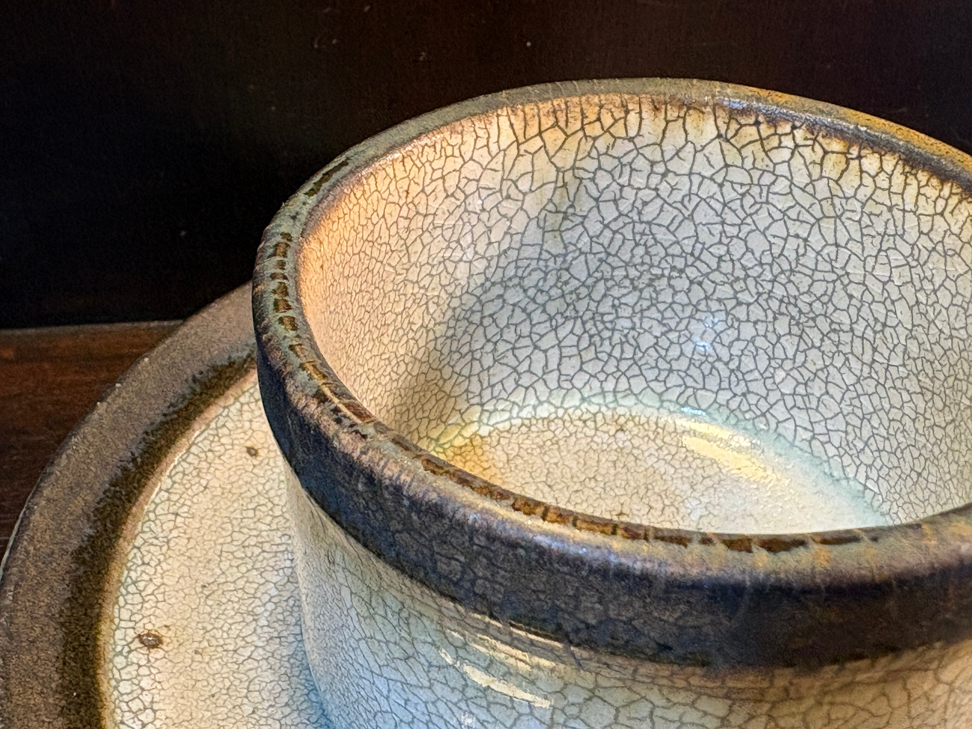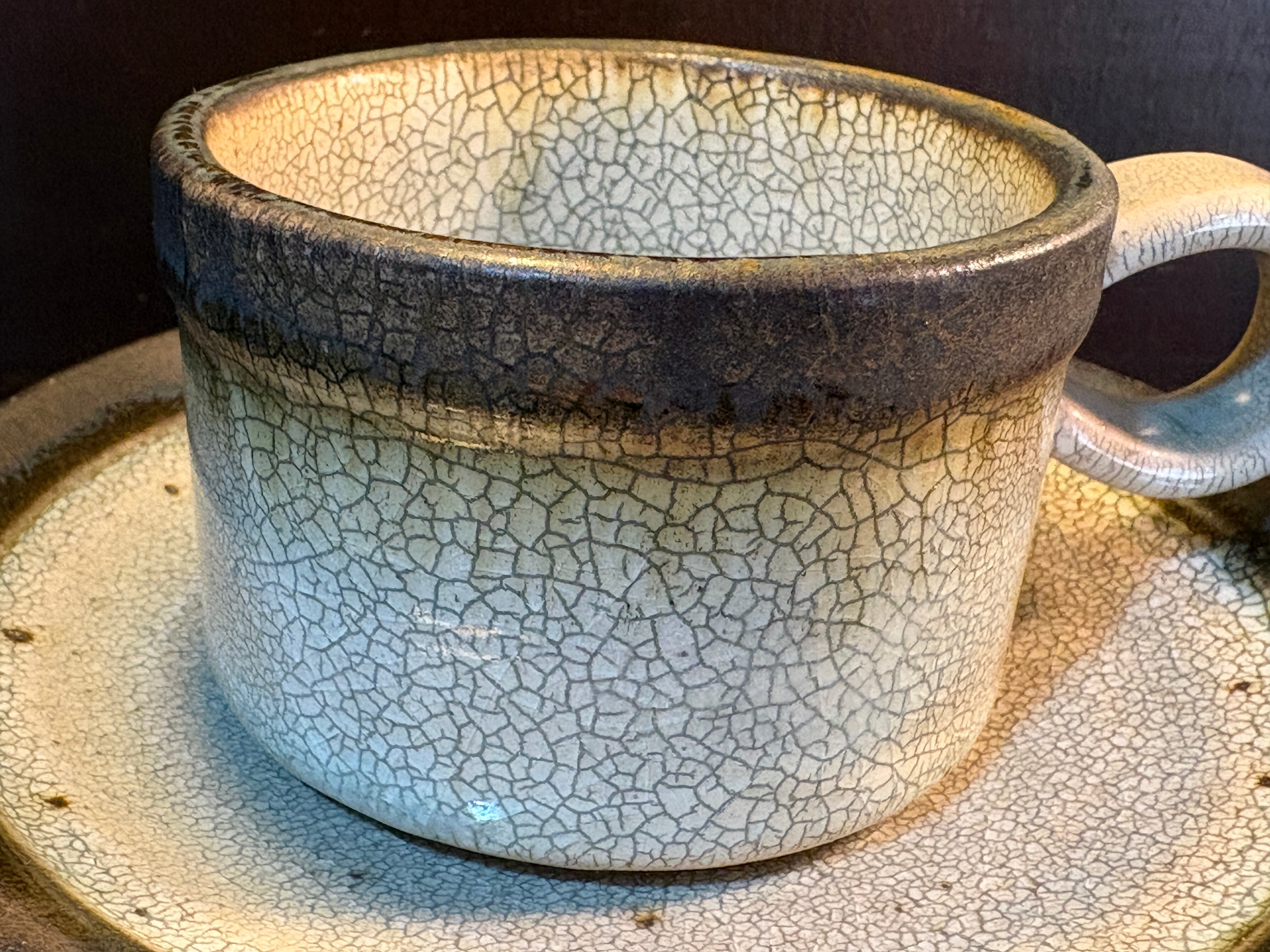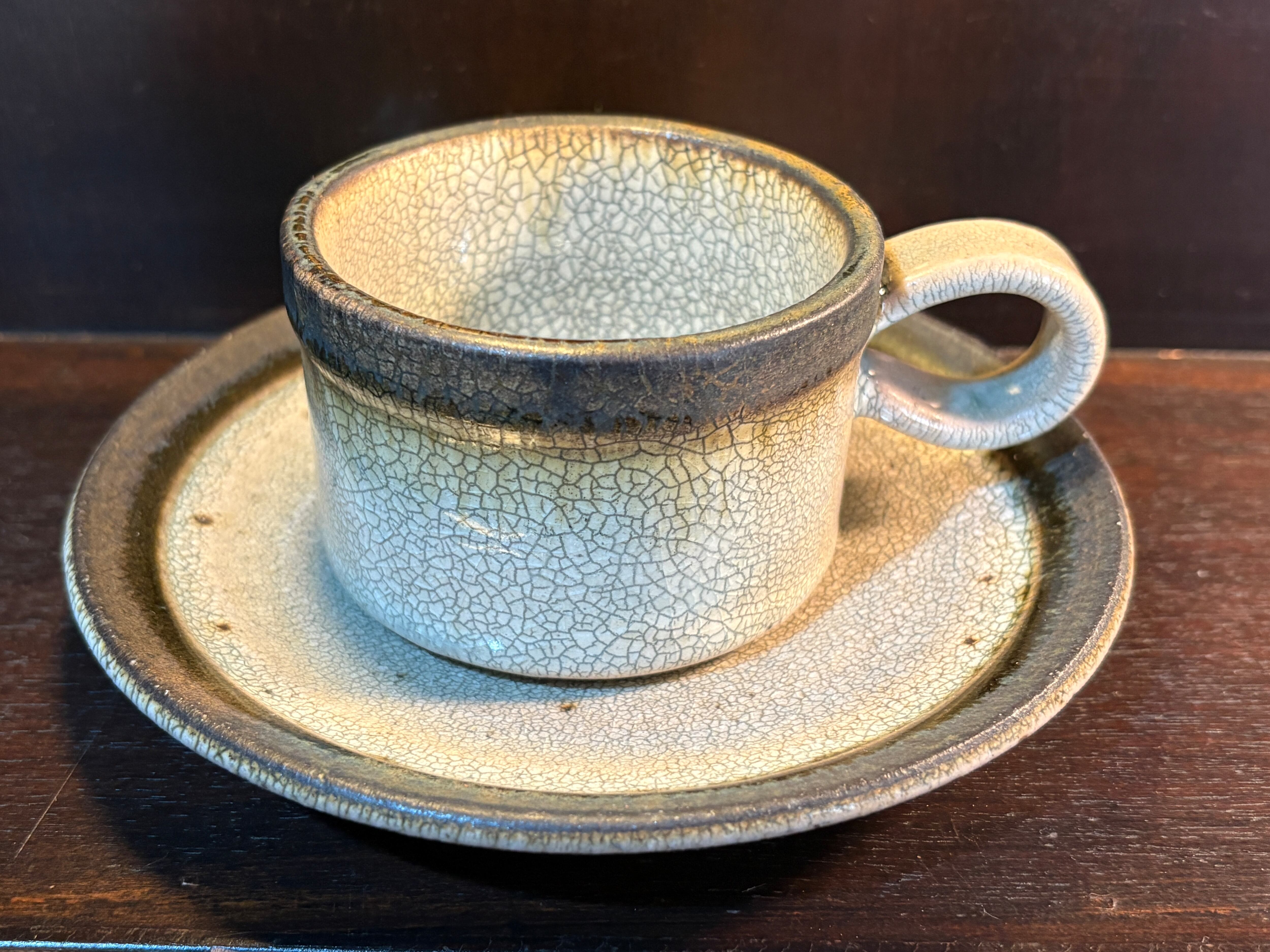 寂びの雰囲気が素敵なやや小ぶりのカップとソーサーのセットです。